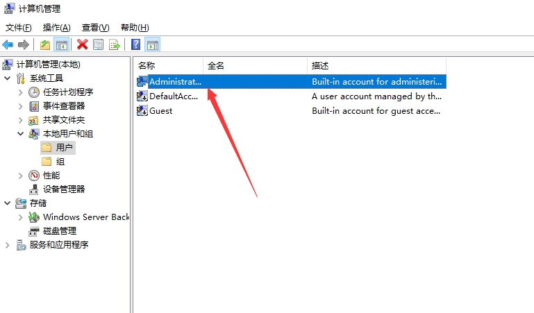 3、打开计算机管理后,点击“本地用户和组”,双击“用户”,可以看到我们现在用着的计算机账户